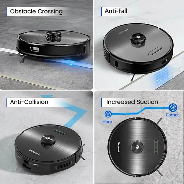 120 minutters køretid i lydløs tilstand, hvilket betyder at den kan gøre rent på op til 200 m2 på én tur. Robotstøvsugeren kan både støvsuge og moppe på én og samme tid, så der kan gøres ordentligt rent på samme tid. Med det indbyggede Precision Laser Mapping and Navigation system får du en yderst effektiv rengøring af dit gulv, som du selv kan regulere og styre via den tilhørende app. Herigennem kan du fx indstille no go-zoner, så den nænsom kører udenom de områder, du ikke ønsker skal tages. Støvsugeren er i stand til at overvinde forhindringer på op til 2 cm.