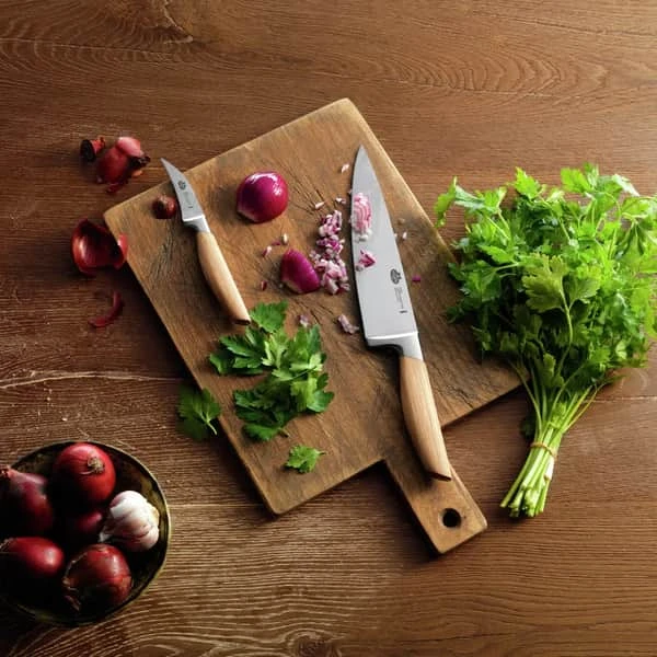 Tevere knivserien fra Ballarini tilbyder køkkenknive af høj kvalitet, der hjælper dig med dit “cucina italiana”. Praktisk blikfang: Det smukke og ergonomiske træhåndtag lavet af let pakkatræ.