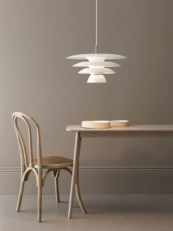 Da Vinci pendlens enkle design formår at skabe masser af udtryk og personlighed. Den specialdesignede skærm skaber et dramatisk udtryk. Hertil giver den et unikt, velafbalanceret lys, der spreder et behageligt og afdæmpet skær. Brug den i stuen, hvor den med garanti vil skabe blikfang – eller i køkkenet, hvor Da Vinci pendlen vil tage sig flot ud og give et behageligt lys.