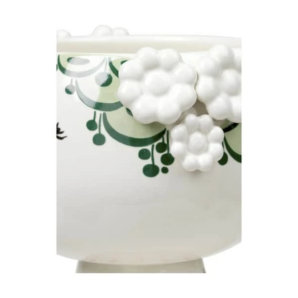 Hans streg er genfortolket som udsmykning på en serie af kopper, fade, blomsterkrukker og meget mere. Hos Imerco kan du også finde smuk juleudsmykning i Wiinblads romantiske signaturunivers.