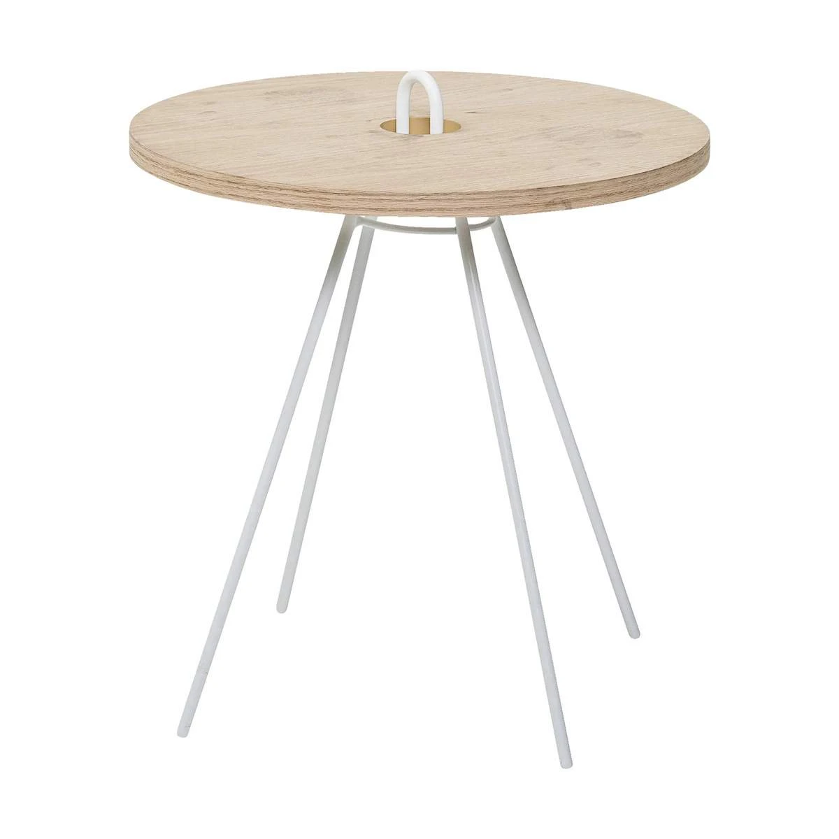 Lyst træ som bordplade Enkelt design med metalstativ Med håndtag som praktisk detalje