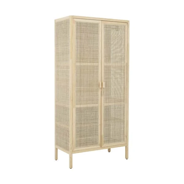 Mariana skabet er lavet af naturmaterialerne fyrretræ og rattan, der passer perfekt ind i en enkel nordisk stil. Brug skabet til dit tøj i soveværelset eller i stuen til flot opbevaring af bløde plaider og smukke vaser.