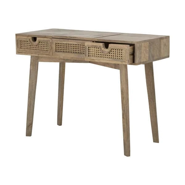 Med sit smukke spejl bliver konsolbordet fra Bloomingville din daglige bedste ven, om du skal sætte håret eller ligge makeuppen, så er dette konsolbord lige noget for dig. I bordet er der to praktiske skuffer til opbevaring, og du kan endda tage spejlet ned og opbevare det i bordet.