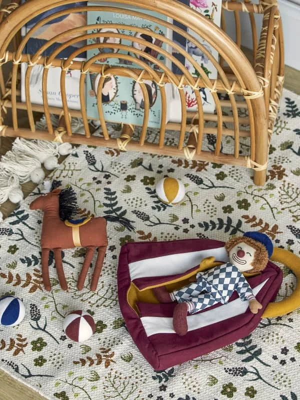 Theobald legetøjssættet fra Bloomingville består af en klovn, cirkustelt, en hest og tre bolde, så sæt fantasien fri og leg!