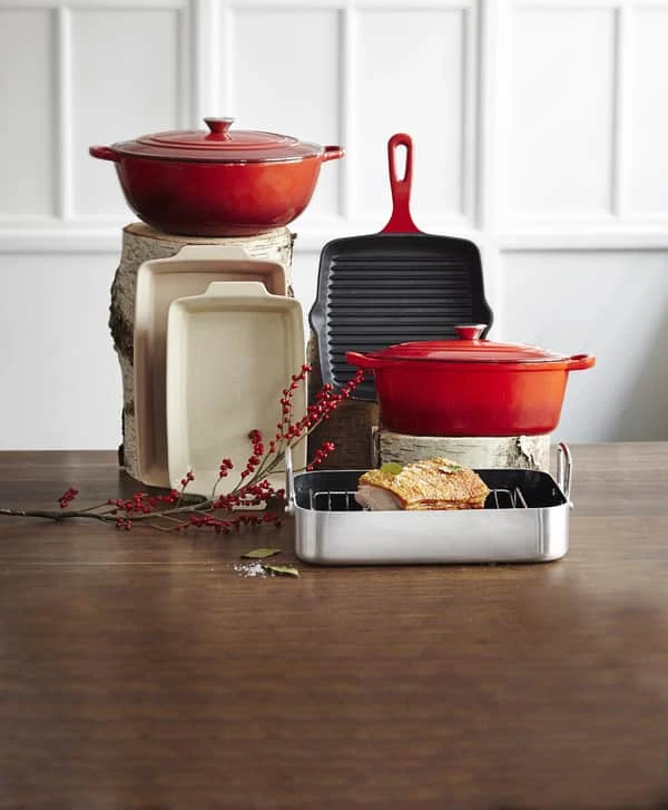 De lodrette håndtag gør det nemt at gribe bradepanden direkte fra ovnen, så du let kan transportere aftenens stegte kylling til bordet.