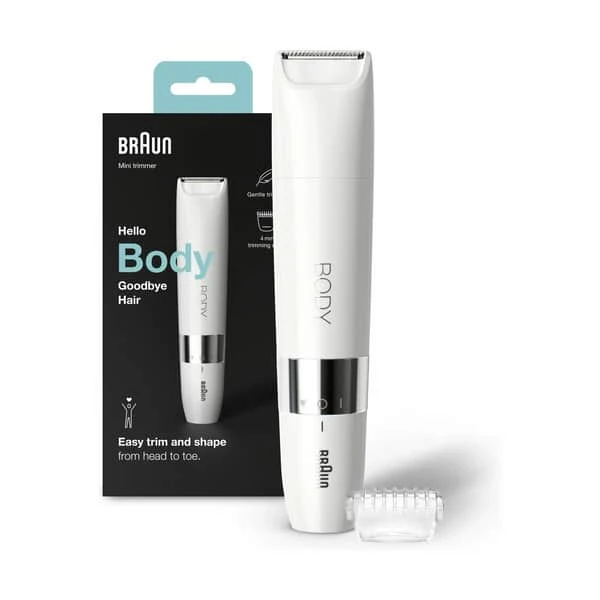 Hold den uønskede kropsbehåring nede med trimmeren fra Braun. Bodytrimmeren fjerner hurtig, nemt og nænsomt de uønsket hår – også på sensitive områder. Og med et mini-design kan du let holde styr på kropsbehåringen, selv når du er på farten.