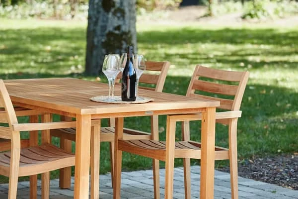 Dæk op til en lækker frokost på det klassiske Cambridge havebord fra Mandalay. Cambridge havebordet er udført i massivt bæredygtigt teaktræ med aftagelige ben og lav sarg, så du kan skubbe dine havestole med armlæn ind under bordet. Med et klassisk og enkelt design kan du bruge bordet både i haven, på terrassen eller altanen.