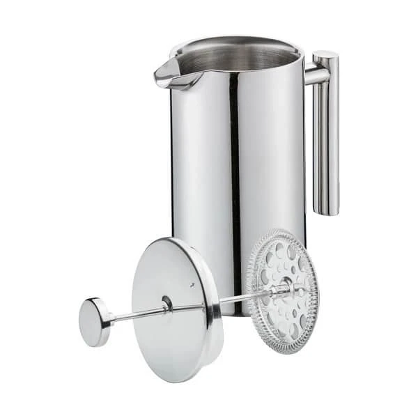 Placer låget og vent i mindst 4 minutter. Skub derefter langsomt filteret ned og se frem til en fuldt aromatisk kop kaffe. Det dobbeltvæggede robuste rustfrie stål holder din kaffe varm. Den praktiske og velskabte enhed er også velegnet til tedrikkere.