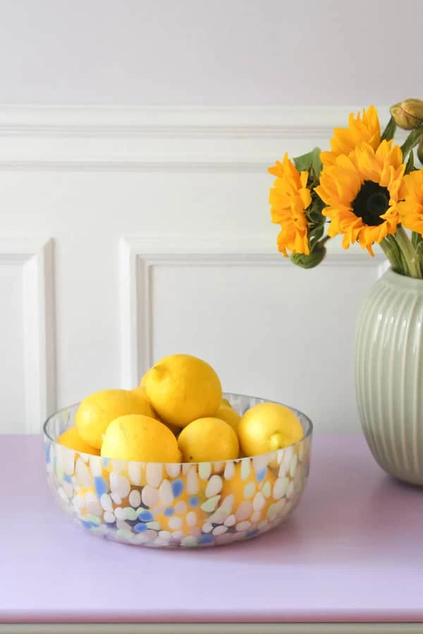 Confetti skålen fra CASA Living er helt perfekt som frugtfad, til salater eller som den store slikskål. Den er lavet i mundblæst glas og giver et farverigt præg på bordet.
