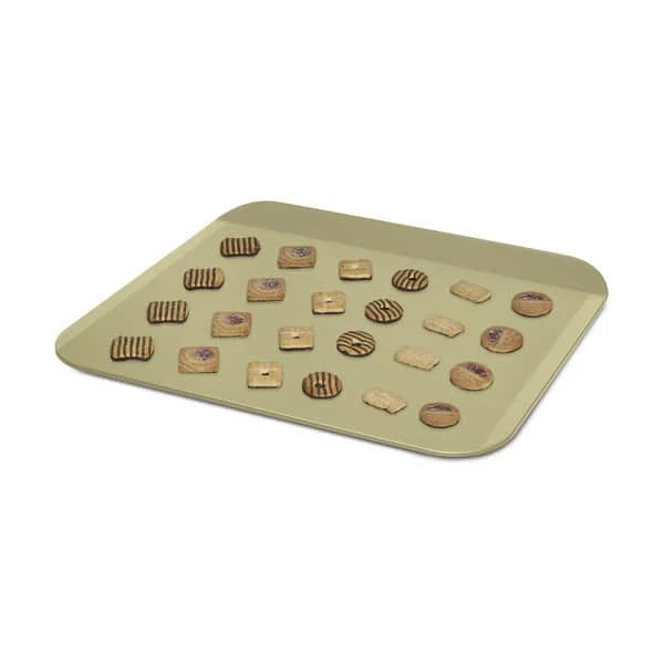 Cookiepladen har et non-stick dobbelt lag af ilaflon, som er baseret på carnauba voks. Det sikrer at dine cookies ikke sidder fast og at pladen er nem at rengøre.
