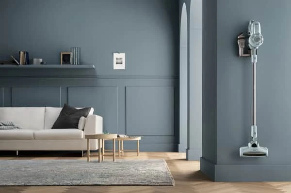 Støvsugeren fra DeLonghi Columbia fungerer uden pose. Og du kan hænge den op på væggen, når du er færdig med at bruge den.