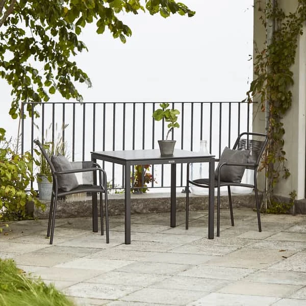 Dæk op til en lækker frokost på terrassen med Elba Verona havemøbelsættet fra Mandalay. Sættet består af et Elba bord og to Verona stole.