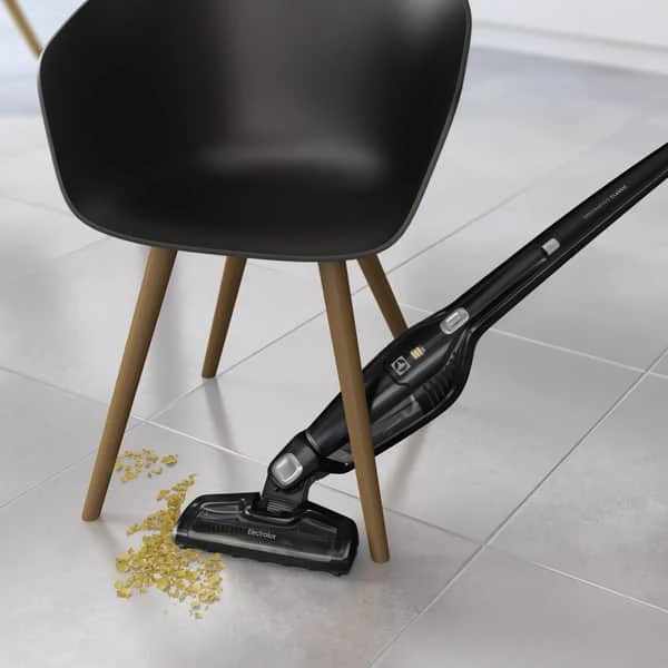 Med 180° manøvredygtighed, er ErgoRapido supernem at håndtere. Du vrider blot i håndtaget og mundstykket drejer skarpt. Hvis telefonen skulle ringe, kan du let stille støvsugeren fra dig – den er nemlig selvstående.