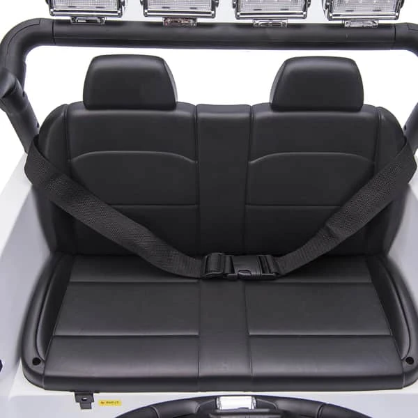 Denne ultraseje offroader er det oplagte valg, når dit barn godt kan lide at udforske verden på eventyrlig vis. Bilen er en ægte sejtrækker, der er udstyret med en motor, der sørger for en fart på op til 8 km i timen. Den kan køre på både græs, fliser og asfalt. Bilen er udstyret med sele, LED-lys foran samt døre, der naturligvis kan åbnes. Den er også udstyret med tre fremadgående gear, når fjernbetjeningen bruges. Skal det være ekstra fedt at køre, så har bilen et ”rocking mode”, der gynger, så køreturen kan blive endnu vildere! Den er også udstyret med LCD voltmeter, så barnet nemt kan følge med i, hvornår der skal ”tankes” igen. Hør musik eller lyt til historier, mens der fræses afsted, brug hornet og nyd alle de realistiske lyde, der også er en del af bilens design. Sædet kan justeres efter barnets størrelse. Køretøjet har følgende godkendelser: CE, EN71, ASTM F963, GB6675, GB19865, EMC samt EN62115.