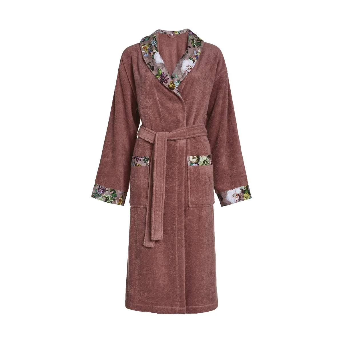 Rige farvetoner og frodige blomster pryder badekåben fra Essenza. Blomsterdetaljerne giver badekåben et luksuriøst præg, og kåben er så behagelig, at du også får lyst til at have den på, efter makeuppen er lagt, og håret er sat.