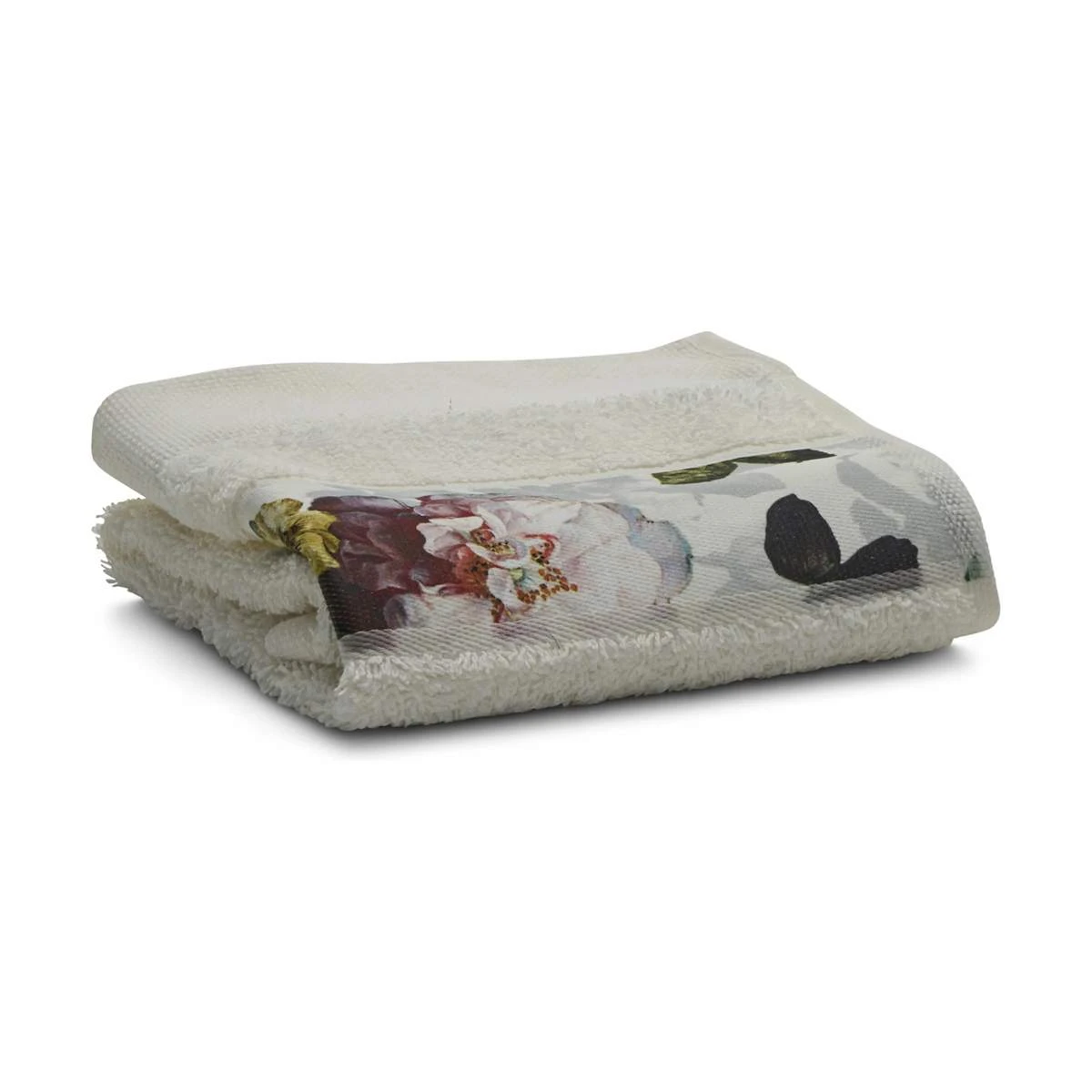 Det stilfulde håndklæde fra Essenzas Fleur-serie er hovedsageligt lavet af bomuld. Der er indarbejdet 4 % polyester i selve blomsterpladen. På grund af det tunge stof kan håndklædet sorbere meget fugt og føles dejligt blødt. Det fås i flere forskellige farver og størrelser.