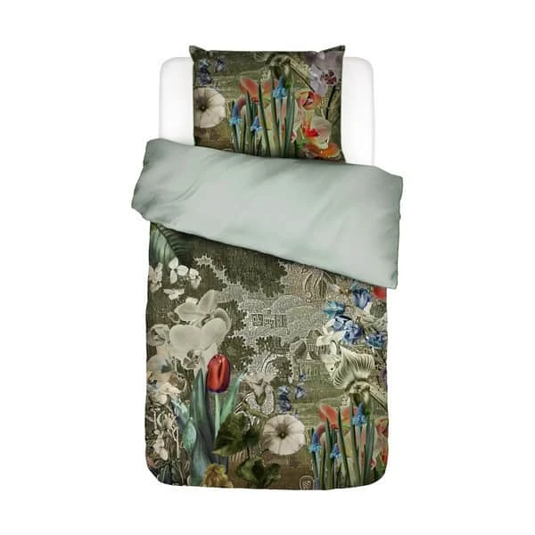 Med Nadia har Essenza skabt en moderne fortolkning af de klassiske gobeliner. Forsiden er prydet med røde, lyserøde, blå, hvide og lilla blomster med grønne blade i forgrunden, mens du i baggrunden kan se hvide konturer af en fjern landsby. Bagsiden af sengetøjet har en flot grøn nuance, farven salvie. Det giver dig et luksuriøst sengesæt, der uden tvivl vil være lækkert at putte sig i, når turen går til drømmeland.