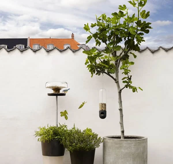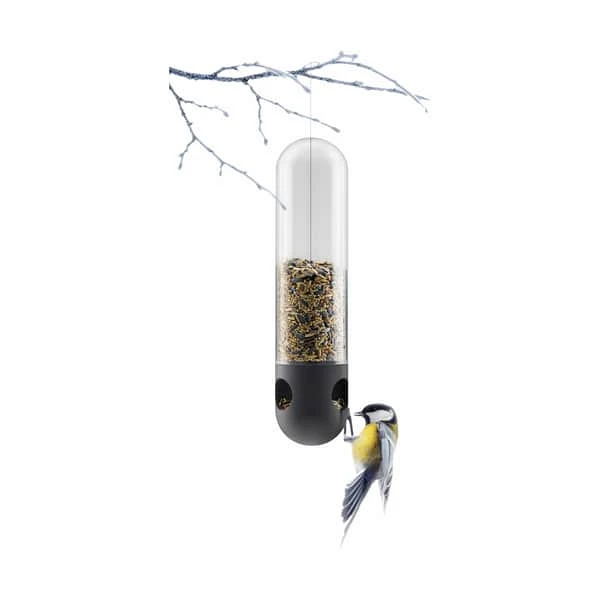 Med Eva Solo fuglefoderrør kan du glæde dig over at følge havens fugle hele året. Fuglefoderrøret hænges op på en gren i et træ eller i en busk og forsyner din haves fugle med frø. De små åbninger nederst i foderrøret gør det nemt for småfugle at gribe fat i røret og spise. Designet betyder også, at både du og fuglene slipper for fugleklatter i foderet. Tip: Husk at fuglene også har brug for vand, så et fuglebad eller en skål med vand i nærheden af dit fuglefoderrør kan vække lykke – og give dig op til 50% flere fugle i haven. Fuglefoderrøret er i frostsikkert glas.