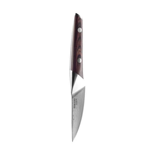 Japanske knive er kendt for at være de skarpeste og de bedste. Derfor er knivene i Nordic Kitchen serien fra Eva Solo er designet efter japanske traditioner. Knivsbladet er udformet i japansk Damaskusstål (AUS 10) og lavet i 67 lag med et skær på en vinkel på 13-15 grader. Denne kombination resulterer i et ultraskarpt blad uden at gå på kompromis med dets fleksibilitet. Designet med en smal ryg gør det let at skære igennem råvarer, og håndtaget er formet med udgangspunkt i hånden anatomi.
