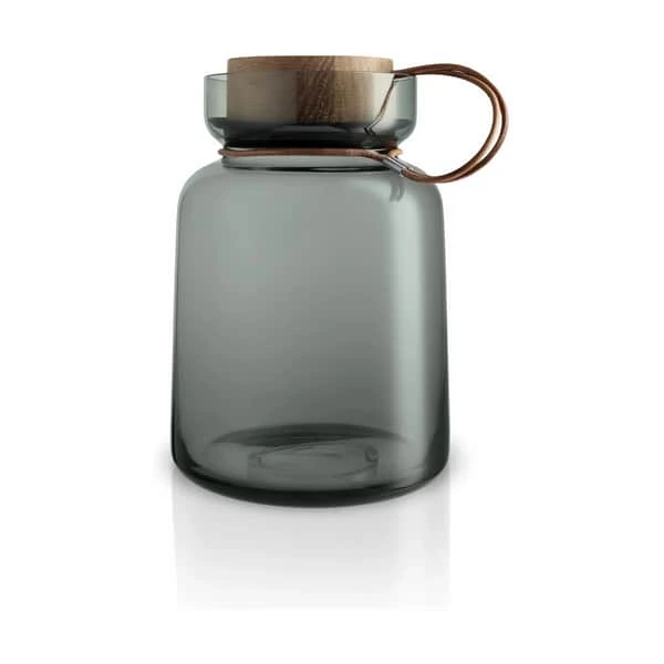 Opbevaringsglasset fra Eva Solo er god til opbevaring af alt fra rosiner til tørrede chilier. Glasser er mundblæst, og røgfarven beskytter mod sollys, så indholdets smag og farve bevares længere. Glassets låg giver nem og hurtig adgang til råvarerne og lukker helt tæt. Glasset tåler maskinopvask. Låg og læderstrop rengøres nemt med en opvredet klud.