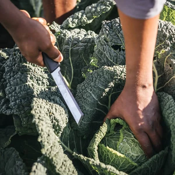 Kniven er ideel til høst af afgrøder med tyk stilk. Kniven har et blad i rustfrit stål med en flad spids til hurtige og lige snit samt en savtakket sektion til overskæring af stilke med mange fibre.