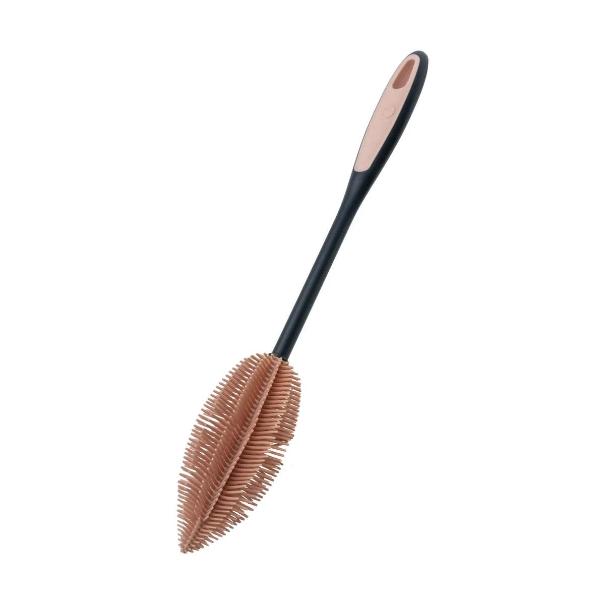 Med denne flaskebørste bliver det nemt at rengøre dine flasker, drikkedunke og din blender. Børstens udformning gør, at den har nemt ved at komme ind i små kroge, hvor bakterier har det med at sætte sig fast. Børsten tåler opvaskemaskine, måler 36 cm og er udformet i silikone.