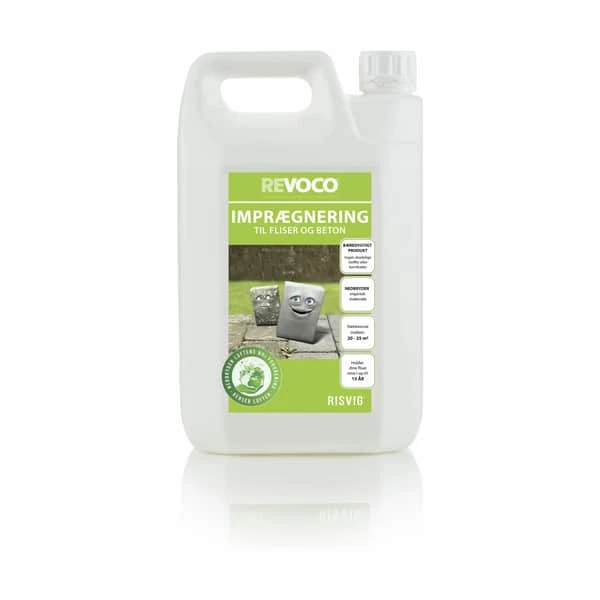 Ved anvendelse af REVOCO flise – og betonimprægnering sikres en miljøvenlig og langtidsholdbar løsning, da imprægneringen er udviklet til at virke lige under overfladen, og derfor ikke kan slides eller skylles af regnen.