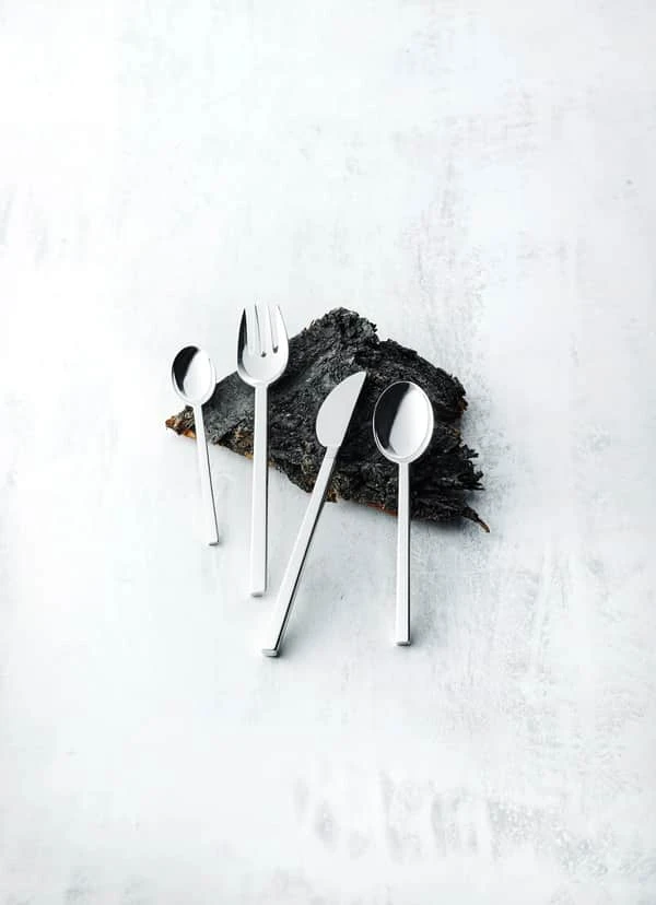 Bestikkets moderne og elegante form kombinerer æstetik og funktion på en stilfuld måde. Samtidig er det let genkendeligt takket være den karakteristiske afrunding, der går igen på kniv, gaffel og ske.