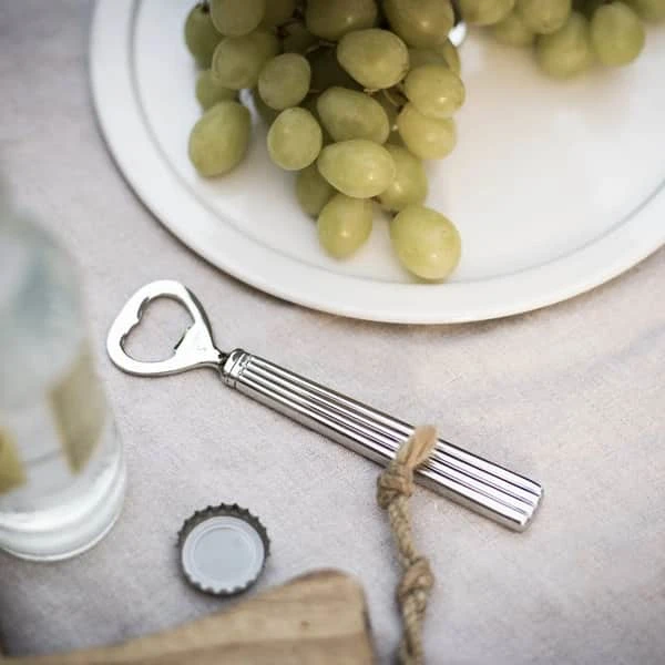 Åbn en kold øl eller en læskende sodavand med Georg Jensen Bernadotte Oplukker. Oplukkeren er udformet i rustfrit stål med de karakteristiske riller på skaftet, der også ses på de øvrige bestikdele fra Bernadotte-serien.