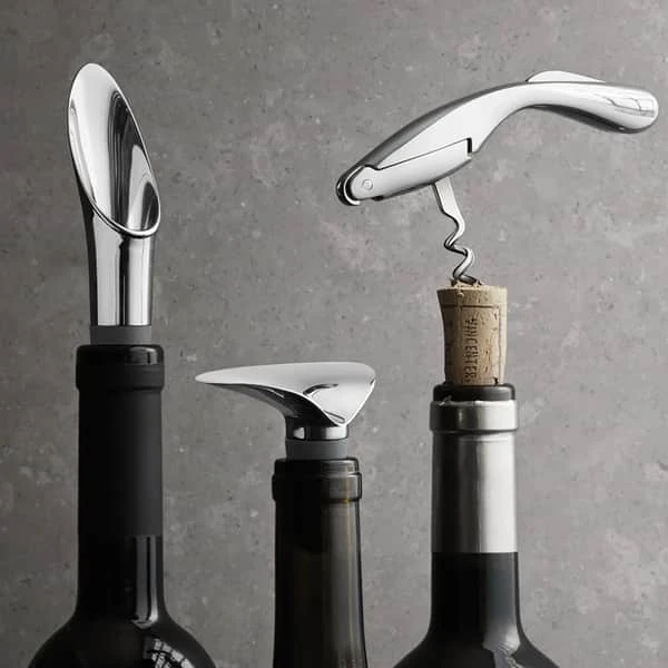 Med dette vinsæt fra Georg Jensen bliver det både en fryd og en kunstart at åbne den gode flaske vin. Sættet består af en proptrækker, skænkeprop og vinprop, der giver dig alle de vigtigste værktøjer inden for rækkevidde.
