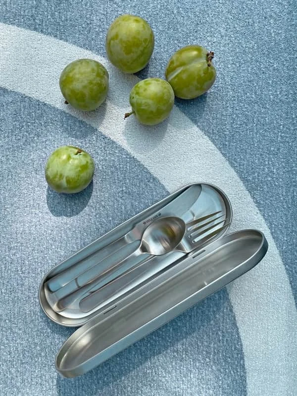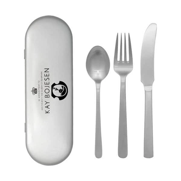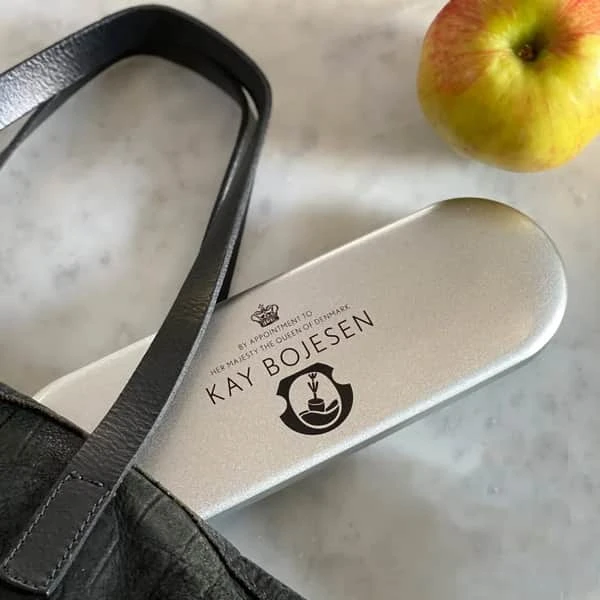 Kay Bojesens rejsebestik er pakket i en lille praktisk stålæske, der er velegnet til at putte i tasken, lommen eller rygsækken. På den måde har du altid dit yndlingsbestik ved hånden, når et måltid skal indtages på farten eller på jobbet. Desuden kan du nemt pakke bestiksættet af vejen, når du er færdig med at bruge det. Rejsesættet indeholder Kay Bojesens frokostkniv og gaffel samt den lille dessertske. Bestikket leveres i en praktisk metalæske, som er let at rengøre imellem brug.