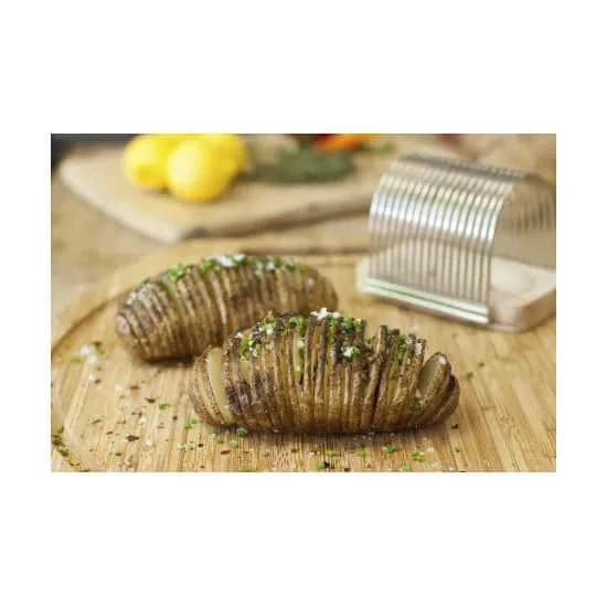 Står den på grillhygge i weekenden. Lav dejlige sprøde kartofler til din steak med denne smarte hasselback kartoffelholder fra Kitchen Masters.