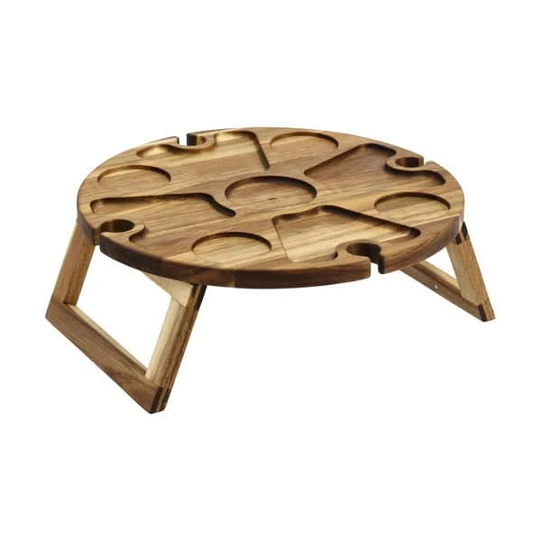Picnicbordet har ben, der kan foldes ud, således at bordet hæves fra underlaget. Der er plads til fire vinglas i bordets udskæringer og en flaske vin, som kan stå i midten. Desuden passer de runde fordybninger til Holms ramekiner og dipskåle.