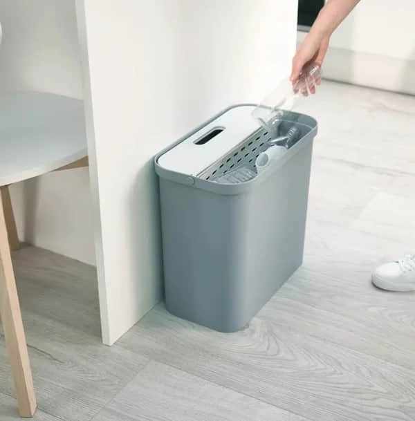 Affaldsspanden fra Joseph Joseph har et smart one-way låg, der komprimerer og holder affaldet nede i spanden, så du kan putte op til to gange så meget affald i. Den er yderst velegnet til bl.a. plastik, pap og papir.