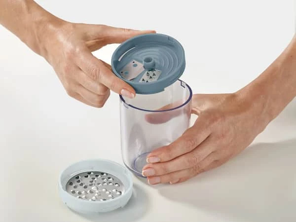 Spiro fra Joseph Joseph er en smart spiralizer i et kompakt design, perfekt til at lave flotte snoede grøntsagsnudler. Den kommer med to slags klinger – en grov og en fin – til forskellige nudeltykkelser, plus et praktisk riveblad. Spiros låg har et blødt greb, der er let at dreje, og de to styrearme hjælper med at holde maden lige, mens du vrider. En gennemsigtig bund opsamler maden, mens du skærer, så din bordplade holdes ren og pæn.