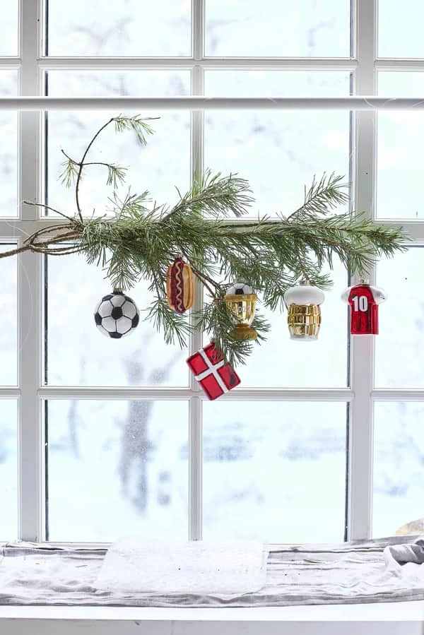 Byd julen og VM i fodbold indenfor med denne julekugle der har Dannebrog som motiv. Julekuglen indgår i en serie af 6 ophæng til træet, der alle har VM i fodbold som tema.