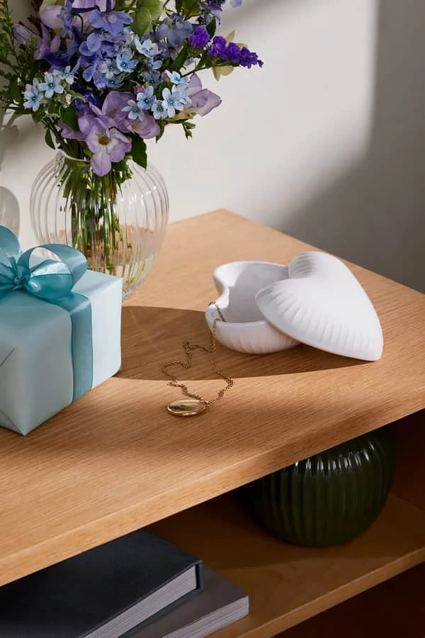Fyld den hjerteformede Hammershøi bonbonniere fra Kähler med chokolader og forkæl en du holder af.