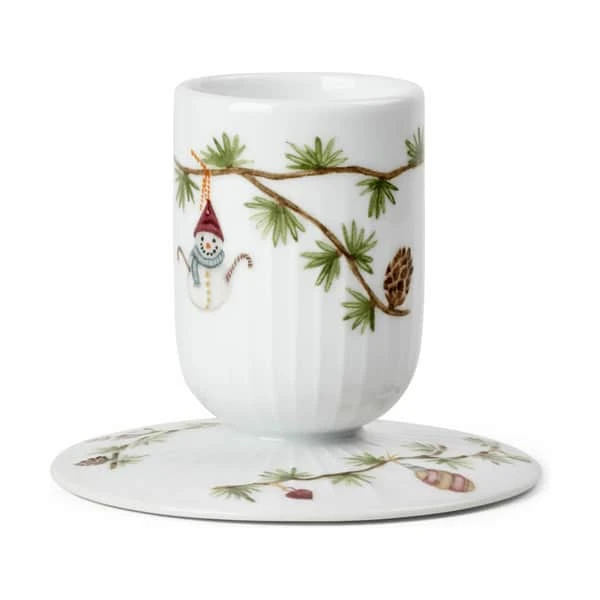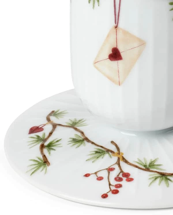 Kählers klassiske hvide Hammershøi-stel har fået en vaskeægte julemakeover. Stellet er dekoreret med nostalgiske jule-elementer som nøddeknækkere, trommer, snemænd og julehjerter, mens den grønne lærkegren skaber en kontinuitet i designet. Motiverne er tegnet med en moderne streg og en farveskala, som bringer minderne om jul i gamle dage frem.