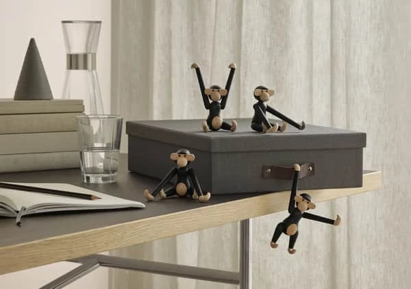 Aben fra Kay Bojesen bliver en livsvarig ven, der følger dig fra barn til voksen. Aben er skabt i 1951 med visionen om at trædyrene skulle have lov til at være sig selv og have deres egen karakteristiske personlighed. Udtrykket og personligheden vil vokse over tid, da lys og luft vil være med til at påvirke farvenueancen i teaken til en mere ensartet og gyldenbrun tone.
