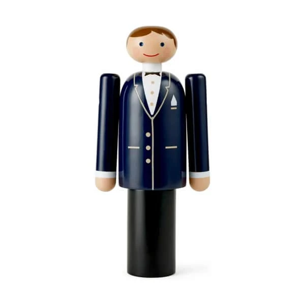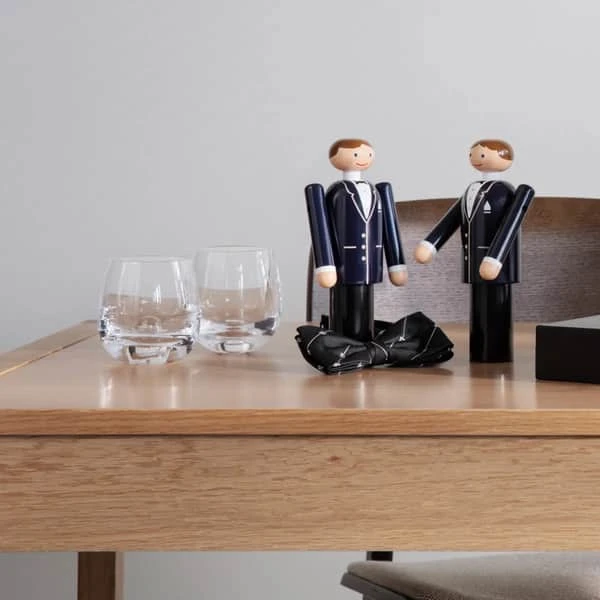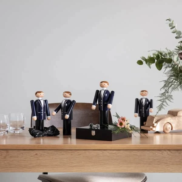 Med Gommen fra Kay Bojesen får du originalt og klassisk dansk træhåndværk – designet i Bojesens ikoniske runde former med hans velkendte glimt i øjet. Gommen er elegant og klassisk klædt i mørkt jakkesæt med hvid skjorte og sort butterfly. Med dens fine detaljer som knapper, lommeklud og revers bliver jakken bragt til live, og Gommens glade og imødekommende smil giver ham charme og personlighed.