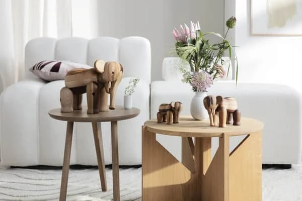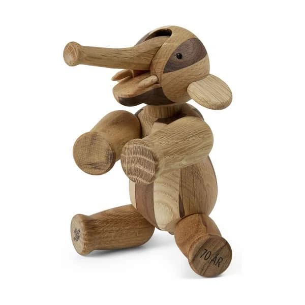 En elefant kom marcherende… Kay Bojesens elefantfamilie er blevet udvidet med denne fine jubilæumsudgave i resttræ, der har et 70-års jubilæumsstempel under foden.