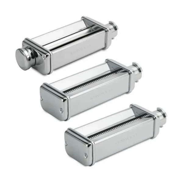 Opgrader din Kenwood køkkenmaskine med disse 3 pastaruller. Du får ruller til at lave lasagneplader, spaghetti og fettucine.