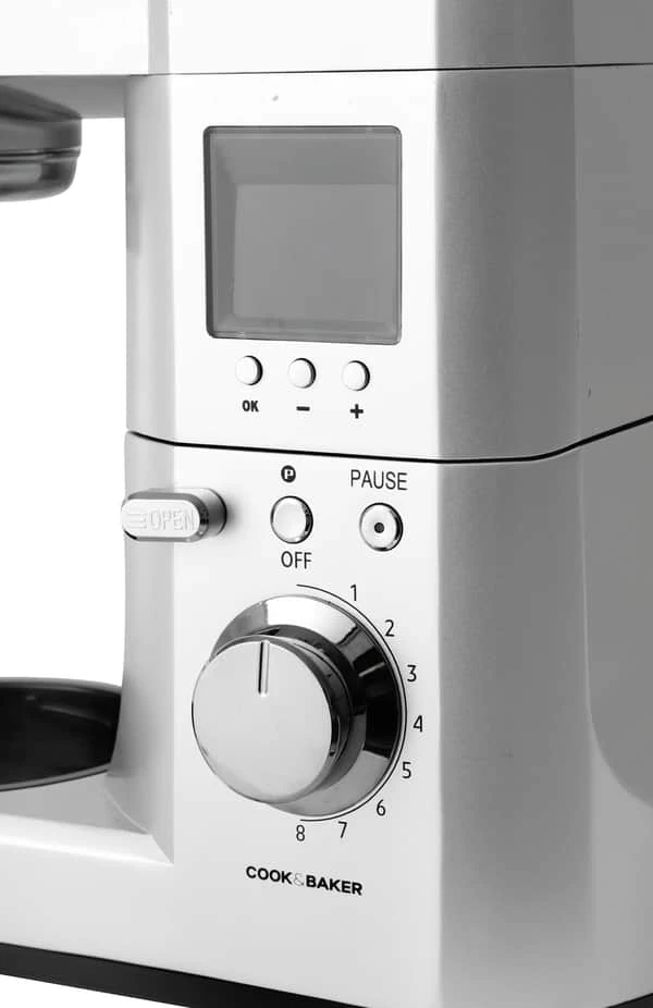 Røremaskinen fra Cook & Baker har en kraftig motor på 1500 watt. Maskinen er let at betjene med trykknapper og du kan indstille de 8 hastigheder ved hjælp af drejeknappen. LED-displayet viser dig dine indstillinger.
