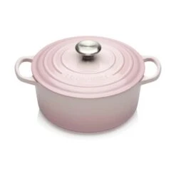 Med den klassiske støbejernsgryde fra Le Creuset laver du nemt simreretter eller bager grydebrød og serveringen kan klares med gryden direkte på middagsbordet – den yndige farve Shell Pink giver gryden din borddækning et feminint look.