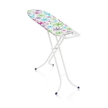I sammenklappet og oprejst tilstand måler strygebrættet 129 cm.Det er justerbart i højden fra 75-88 cm, og dets kraftige ramme gør det stabilt og robust.