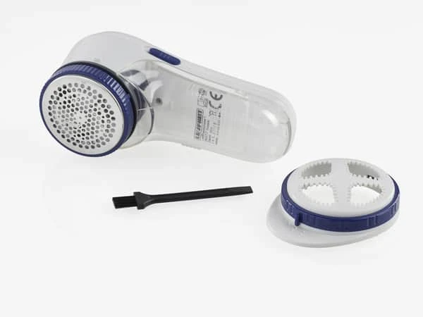 Fnugfjerneren føres hen over materialet, og fnug i alle størrelser trækkes ind gennem hulnettet og samles i en beholder, der er nem at tømme. Roterende knivblade af rustfrit stål med beskyttelsesdæksel, der kan justeres i tre højder sikrer, at fnugfjerneren kan bruges på alle materialer, også det sarteste tøj.