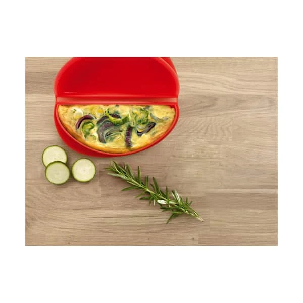 Omeletformen er fremstillet i silikone, som gør den let at arbejde med. Og ikke nok med at formen er nem at gå til, når du skal lave din omelet, den er også nem at rengøre, når du er færdig med den. Formen tåler både mikroovn, ovn og en tur i opvaskemaskinen, så der er ingen undskyldninger for ikke at smutte i køkkenet og bikse et lækkert måltid sammen.
