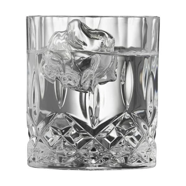 Glassættet er udformet i krystalglas med dekorative facetteringer, der giver et strejf af stil til enhver drink, om det er vand, iste eller en kølig sommerdrik.