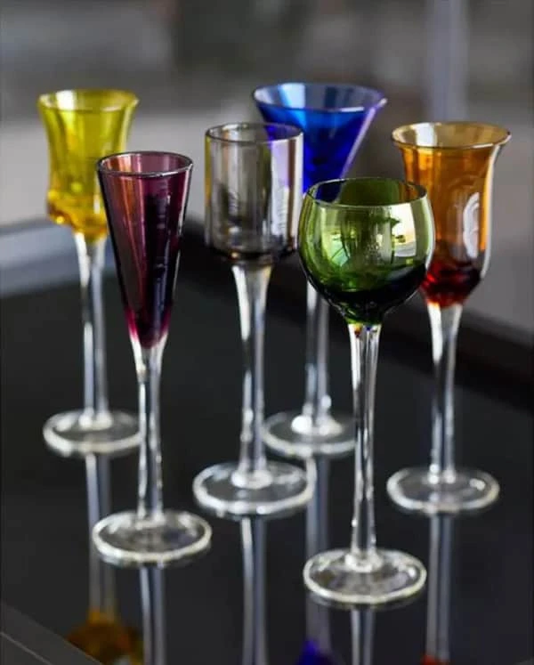 Det smukke sæt indeholder 6 forskellige gennemfarvede, mundblæste snapseglas, som alle bidrager til en god stemning ved frokostbordet.