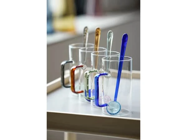 Disse flotte lange Torino glasskeer fra Lyngby Glas, som kommer i fire forskellige farver, er perfekte til desserter eller kaffe og te. Farvekombinationerne er skaft med lyseblåt hoved, smoke/lysegrøn, amber/koboltblå og grøn/lyserød. De tåler opvaskemaskine, dog er de skrøbelige. De passer perfekt ind i det farverige hjem, eller hos dig, som elsker lidt ekstra i hverdagen.